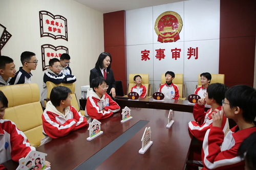 在法院講解員的帶領(lǐng)下,學(xué)生們依次參觀了訴訟服務(wù)中心、家事文化長(zhǎng)廊、陽(yáng)光大廳、科技法庭、院史陳列室等場(chǎng)所,認(rèn)真觀看了中院全面建設(shè)專題片和中院干警自編自導(dǎo)自演的預(yù)防未成年人犯罪題材法治微電影《你依然是天使》,對(duì)法院的職能作用、機(jī)構(gòu)設(shè)置、歷史文化、信息化建設(shè)有了更為深刻的認(rèn)識(shí)。
