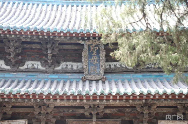 外觀玲瓏似涼亭——獻殿。獻殿是給圣母殿邑姜供奉祭品的享堂,始建于金大定八年(1168),明萬歷二十二年(1594)重修。獻殿高9.75米,其梁架節(jié)省材料且堅固,斗拱結(jié)構(gòu)疏朗,外觀玲瓏似涼亭。