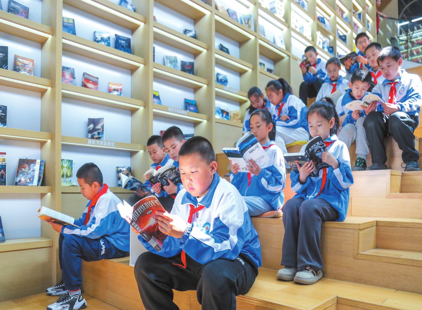 娘子關磚縫萌發(fā)新綠,礦山軌道延展為書徑。書香伴著春光,一直延伸到桃河岸邊。公園里,長長的書廊倚翠而設,市民捧卷靜立,春花落滿書頁。這座曾以火花照亮北方的城市,正將工業(yè)文明的硬朗骨骼,熔鑄成全民閱讀的錚錚鐵骨。