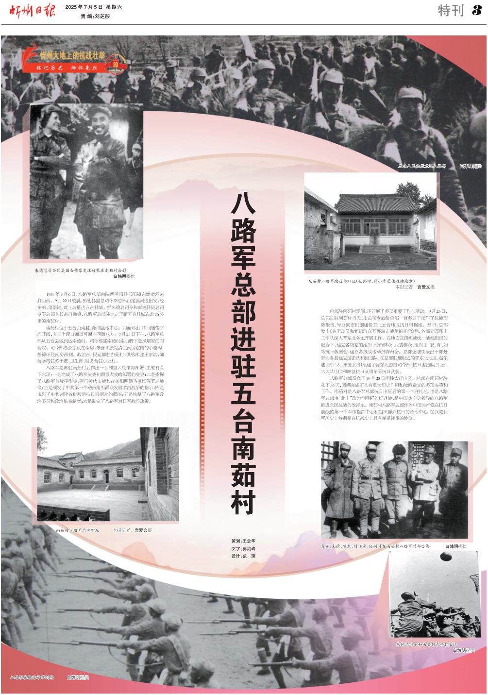 1937年9月6日,八路軍總部由陜西涇陽縣云陽鎮(zhèn)東渡黃河來到山西。9月22日凌晨,彭德懷副總司令率總部由定襄河邊出發(fā),經(jīng)東冶、望景崗、黃土坡抵達(dá)五臺(tái)縣城。經(jīng)朱德總司令和彭德懷副總司令等總部首長(zhǎng)親自勘察,八路軍總部駐地定于距五臺(tái)縣城東北15公里的南茹村。