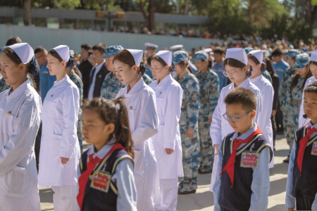 圖①:9月18日,在沈陽(yáng)“九·一八”歷史博物館殘歷碑廣場(chǎng)拍攝的“勿忘九一八”撞鐘鳴警儀式現(xiàn)場(chǎng)。