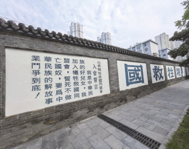 山西國民師范舊址革命活動(dòng)紀(jì)念館珍藏著兩枚山西犧牲救國同盟會(huì)的會(huì)徽。會(huì)徽為銅質(zhì)、圓形,圖案以民國時(shí)期中國地圖為背景,正中書有“犧牲救國”四個(gè)大字,是國家一級(jí)文物。