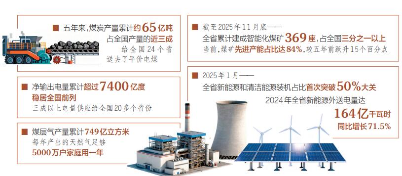 我省堅持新能源與傳統(tǒng)能源協(xié)同,加快建設煤炭綠色開發(fā)利用基地、電力外送基地、非常規(guī)天然氣基地,能源供應韌性大幅增強,能源安全保障能力持續(xù)提高。